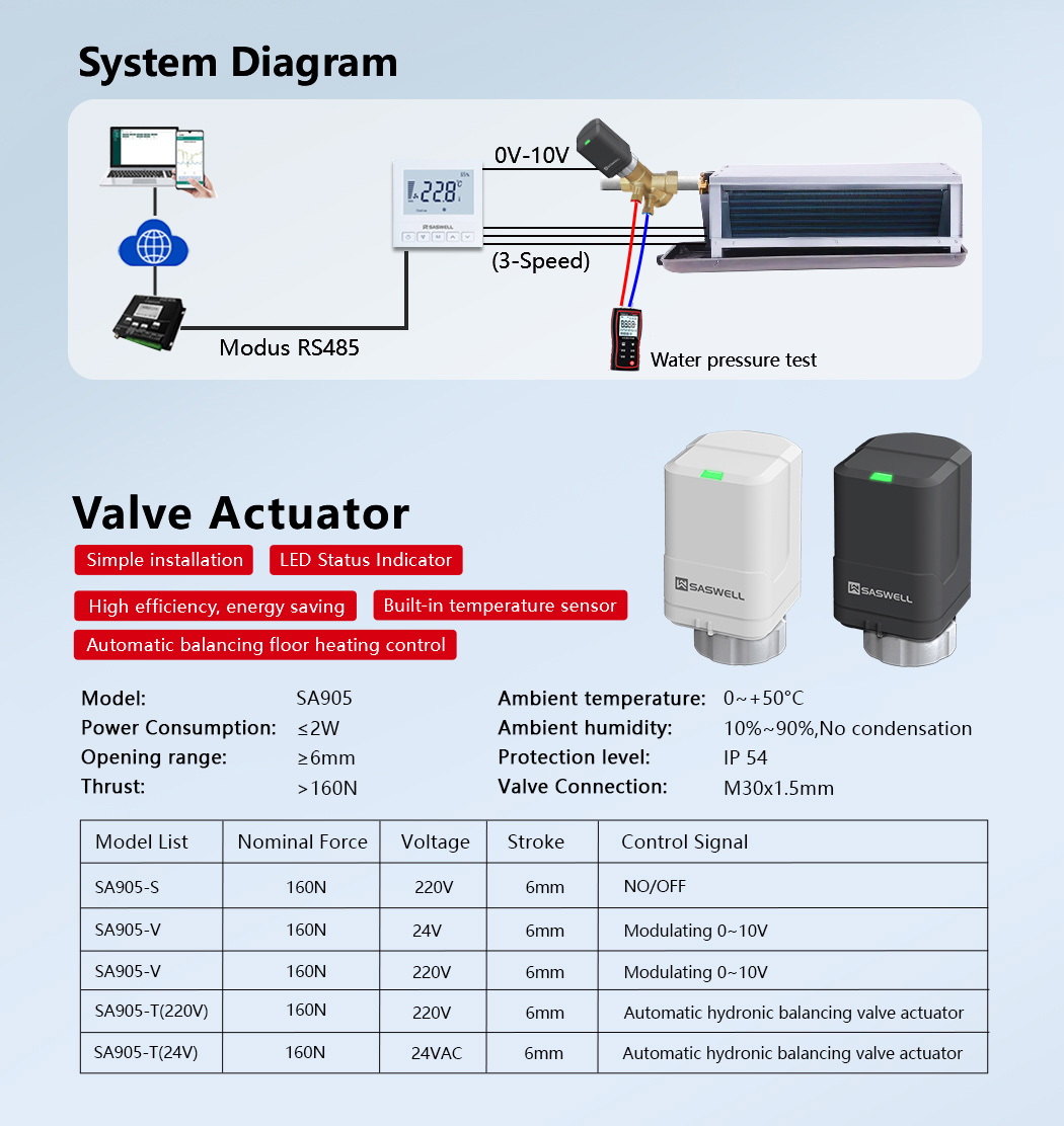 Das druckunabhängige Regelventil (PICV) von SASWELL ist ein Hochleistungsventil mit präziser Durchflussregelung und automatischem hydraulischen Abgleich, das speziell für moderne HLK-Systeme entwickelt wurde. Es sorgt für einen konstanten Durchfluss unabhängig von Systemdruckschwankungen und gewährleistet so eine präzise Temperaturregelung und einen energieeffizienten Betrieb. Dank eines voreingestellten maximalen Durchflusses ist kein zusätzlicher hydraulischer Abgleich erforderlich, was die Systemleistung und den Komfort deutlich verbessert. Das PICV eignet sich für Gebläsekonvektoren, Lüftungsgeräte, Fußbodenheizungen sowie Fernkühlungs-/Heizungsanwendungen und unterstützt vielfältige Steuerungsoptionen für eine flexible Systemintegration.