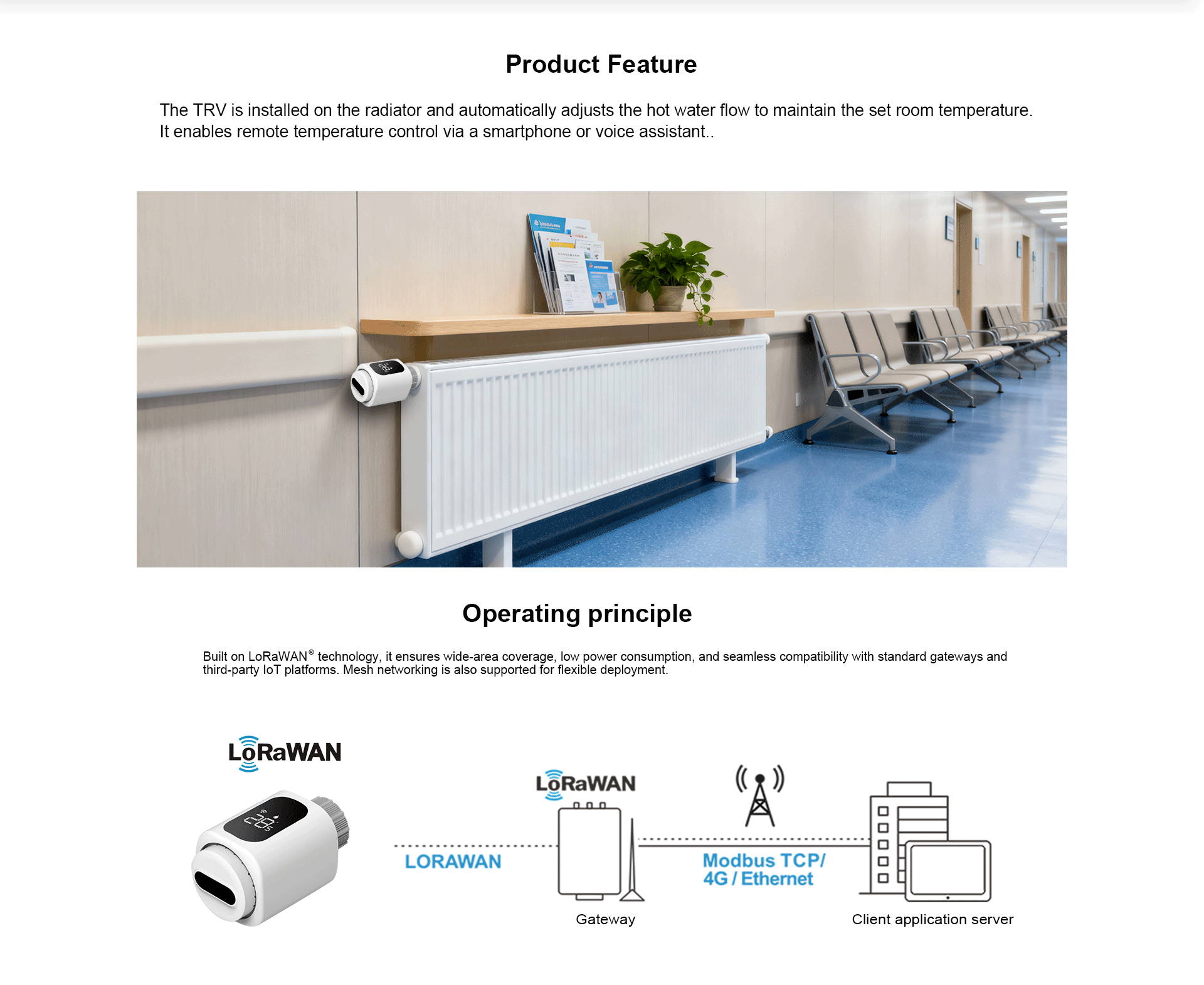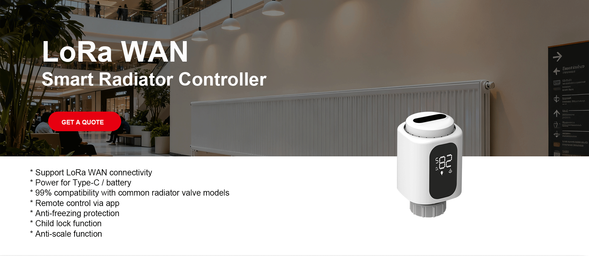 Der LoRaWAN Smart Radiator Controller ist ein intelligentes Heizungssteuergerät, das die LoRaWAN-Technologie zur Fernregelung der Raumtemperatur über eine mobile App oder eine IoT-Plattform nutzt. Es unterstützt sowohl Typ-C- als auch Batteriebetrieb und ist mit 99 % der Heizkörperventilmodelle kompatibel.