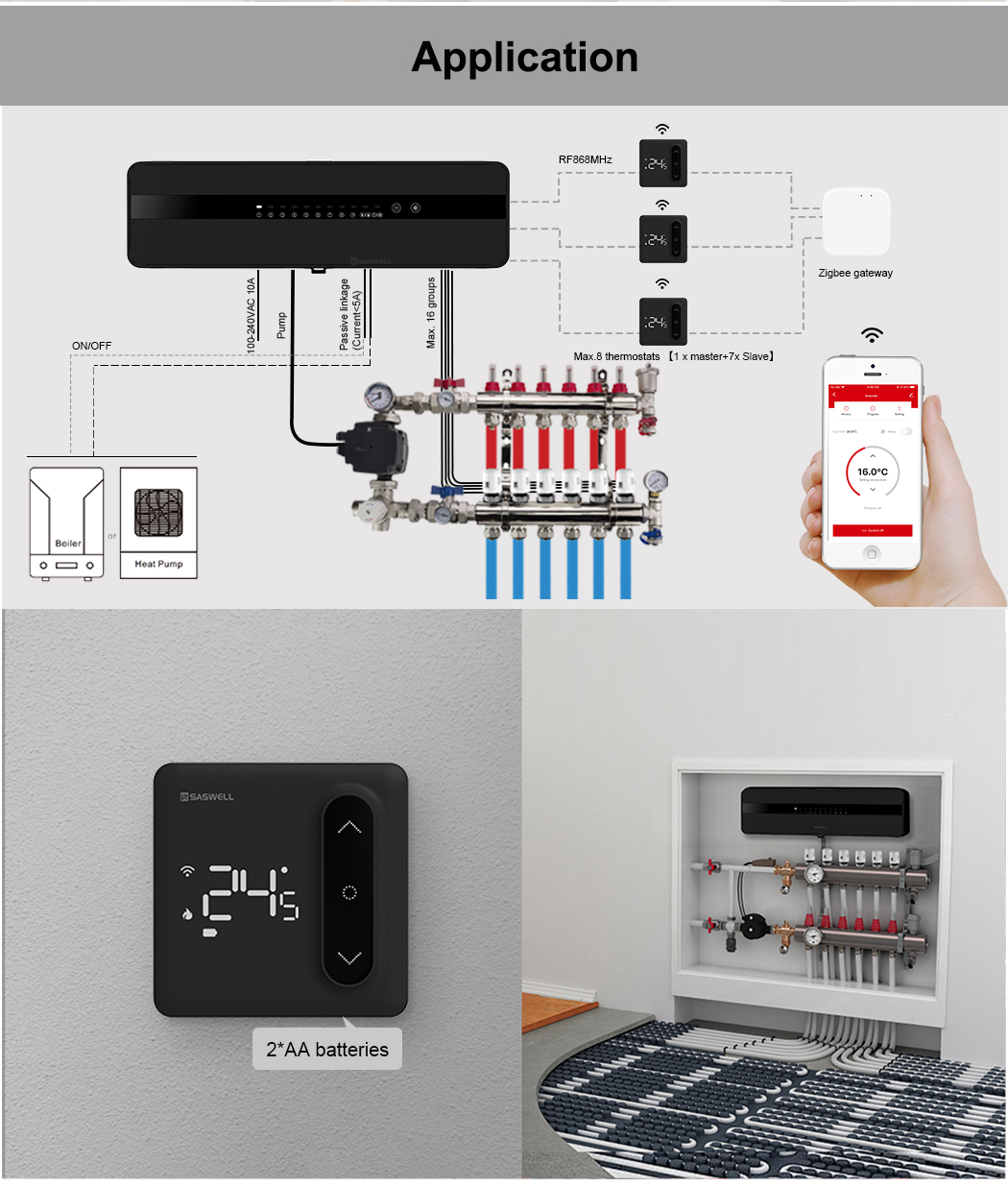 Das kabellose Strahlungsheiz- und -kühlsystem SASWELL ist für moderne Wohn- und Geschäftsgebäude konzipiert und bietet nahtlose Kompatibilität mit Heizkesseln und Wärmepumpen. Es kann sowohl Strahlungsheizung als auch -kühlung steuern und sorgt so das ganze Jahr über für ein angenehmes Raumklima. Unterstützt RS-485-Kommunikation Es lässt sich problemlos in Gebäudeautomationssysteme (BAS) und Smart-Home-Plattformen integrieren und erfüllt die Anforderungen von Auftragnehmern und Händlern in verschiedenen Anwendungen.