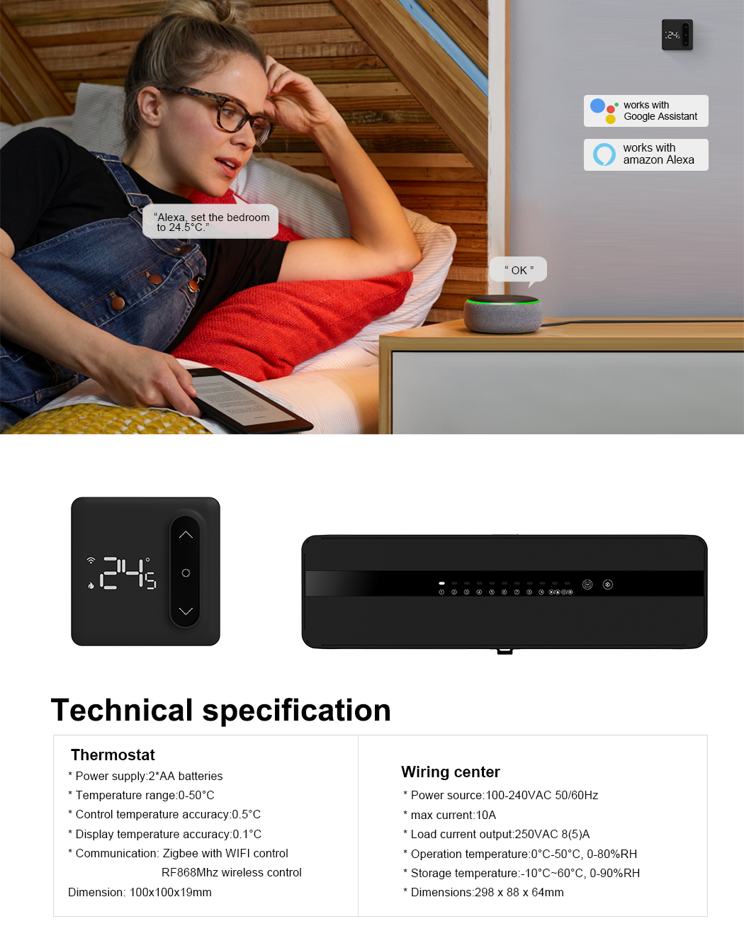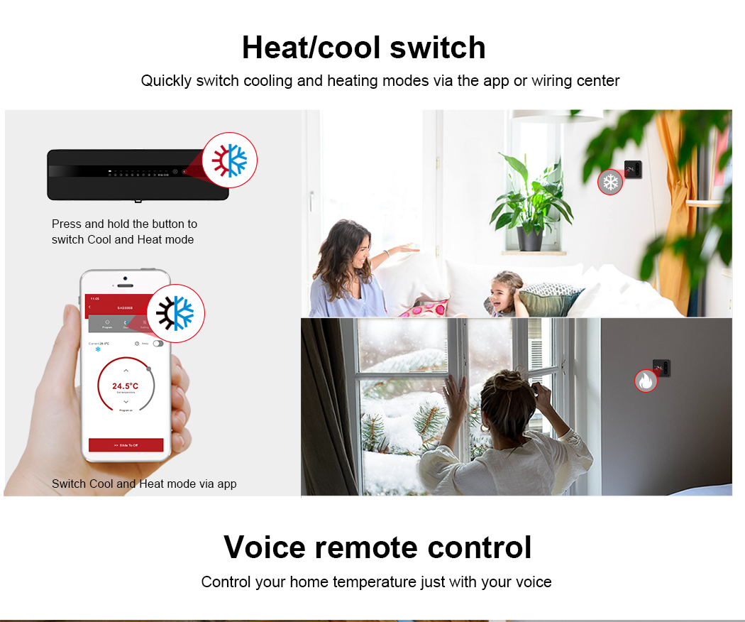 Das kabellose Design vereinfacht die Installation und eignet sich sowohl für Neubau- als auch für Renovierungsprojekte. Nutzer können die Innentemperatur per Fernzugriff über eine mobile App regeln, was den Komfort und das Smart-Living-Erlebnis erhöht. Die präzise Temperaturregelung trägt zur Optimierung des Energieverbrauchs und zur Senkung der Betriebskosten bei.