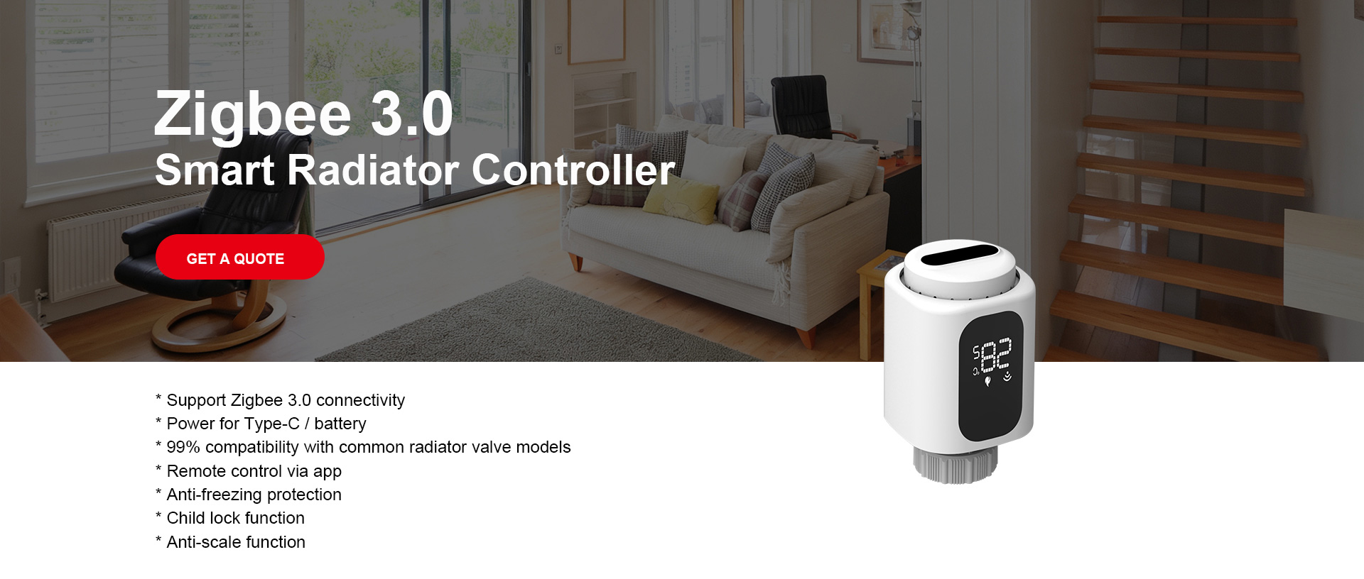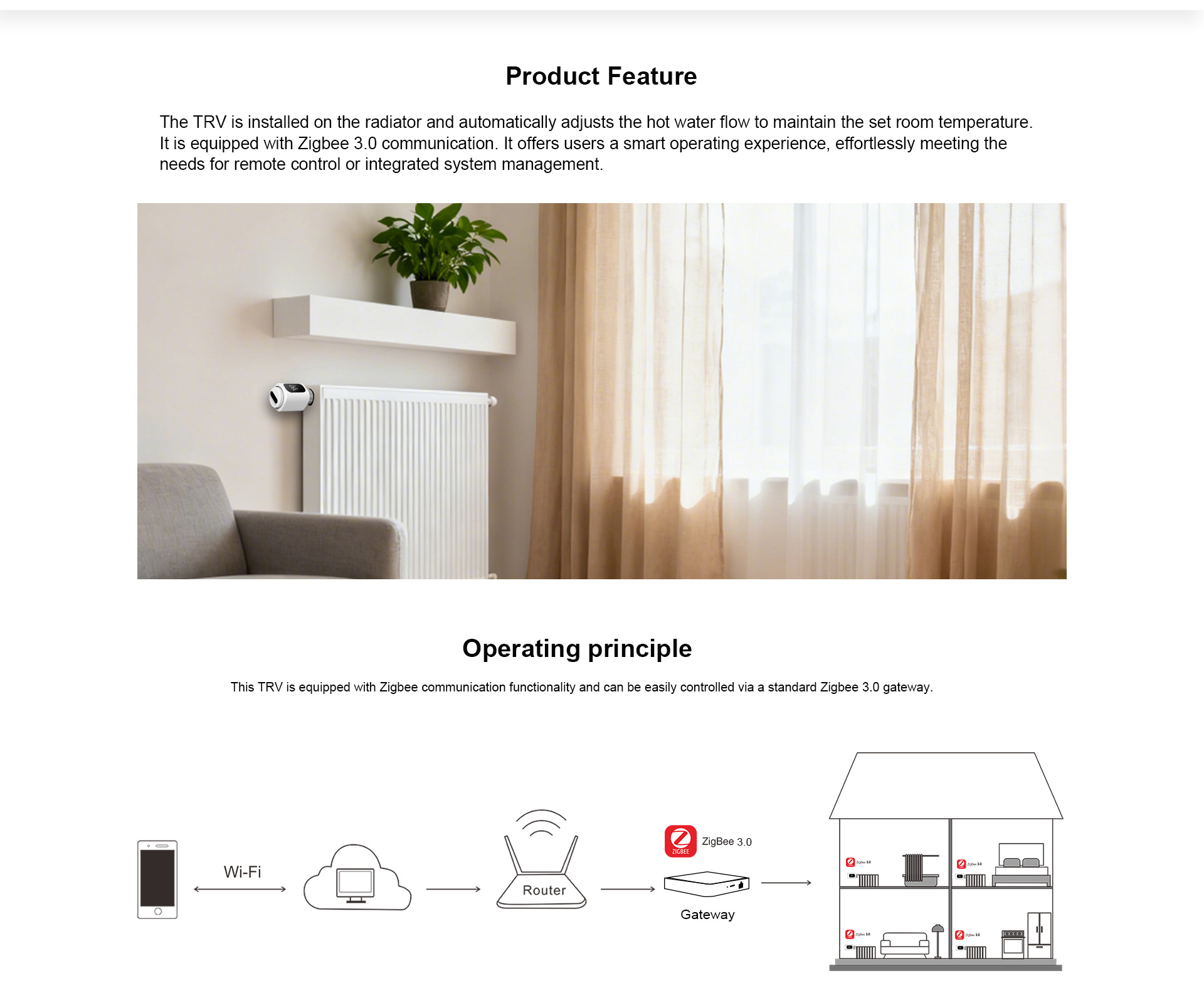 Der Zigbee 3.0 Smart Radiator Controller ist ein intelligentes Heizungssteuergerät auf Basis des Zigbee 3.0-Protokolls. Er lässt sich nahtlos mit Smart-Home-Gateways und mobilen Apps verbinden und ermöglicht so die Ferneinstellung der Temperatur und ein energieeffizientes Heizungsmanagement.